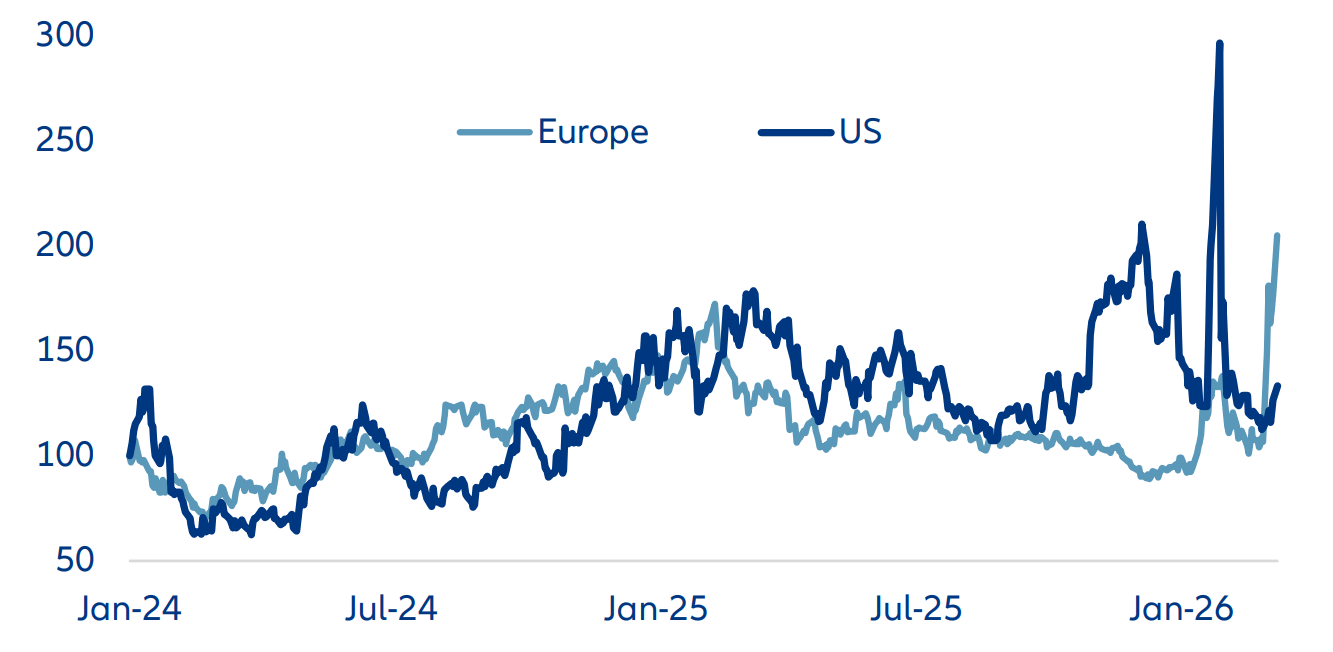 Por ahora, los cinco bancos centrales deben evaluar la magnitud y la posible duración del aumento de la inflación. Estados Unidos se enfrenta quizás a la situación más difícil. La caída de las nóminas en febrero puso de manifiesto que el mercado laboral estadounidense sigue débil, sin indicios de que la mejora del impulso cíclico se esté traduciendo en nuevas contrataciones. Dado que la Fed tiene un doble mandato (se centra tanto en la inflación como en el máximo nivel de empleo posible), está expuesta a riesgos en ambos sentidos. Como resultado, tiene una justificación muy sólida para mantener los tipos sin cambios ante el aumento de los precios de la energía, con el fin de recabar más información. Los mercados de tipos de interés siguen esperando que la Fed recorte los tipos este año, aunque más tarde y en menor medida de lo previsto inicialmente.