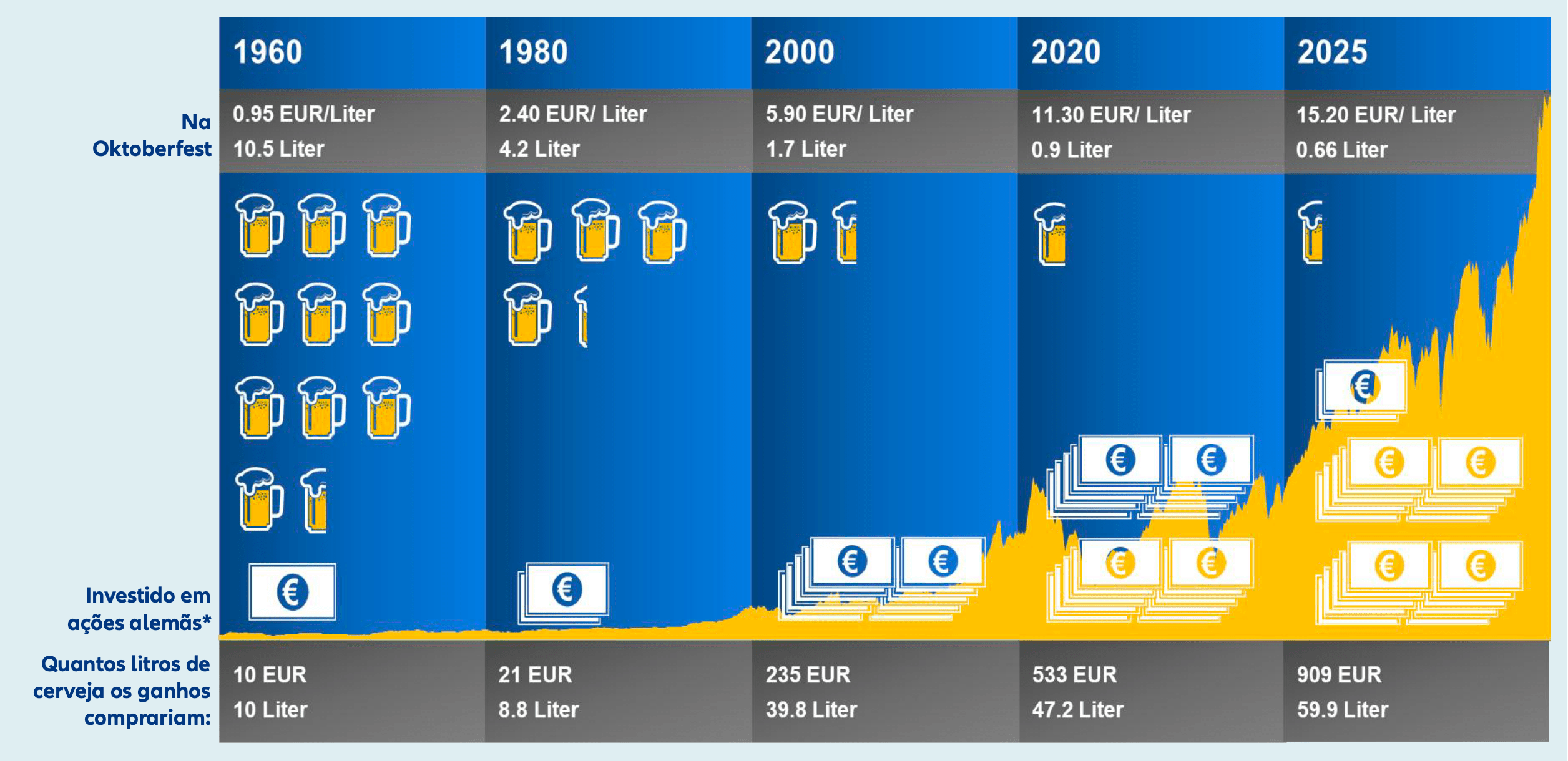 Basado en el comportamiento histórico del C-DAX. Los resultados pasados no garantizan rendimientos futuros. Los precios de un litro de cerveza corresponden a precios medios. Fuente: LSEG Datastream; Dr. Hans-Jörg Naumer, AllianzGI Global Capital Markets & Thematic Research, septiembre de 2025.